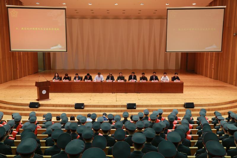 “ 重任在肩,摔打磨练,自强不息为强军;饮水思源,披荆斩棘,止于至善报国家。”2012级优秀毕业生代表肖智带领毕业国防生,在科艺中心许下铮铮誓言“服从命令,听从指挥,努力学习,刻苦训练,锤炼意志,磨砺作风,坚决完成当兵锻炼任务!”