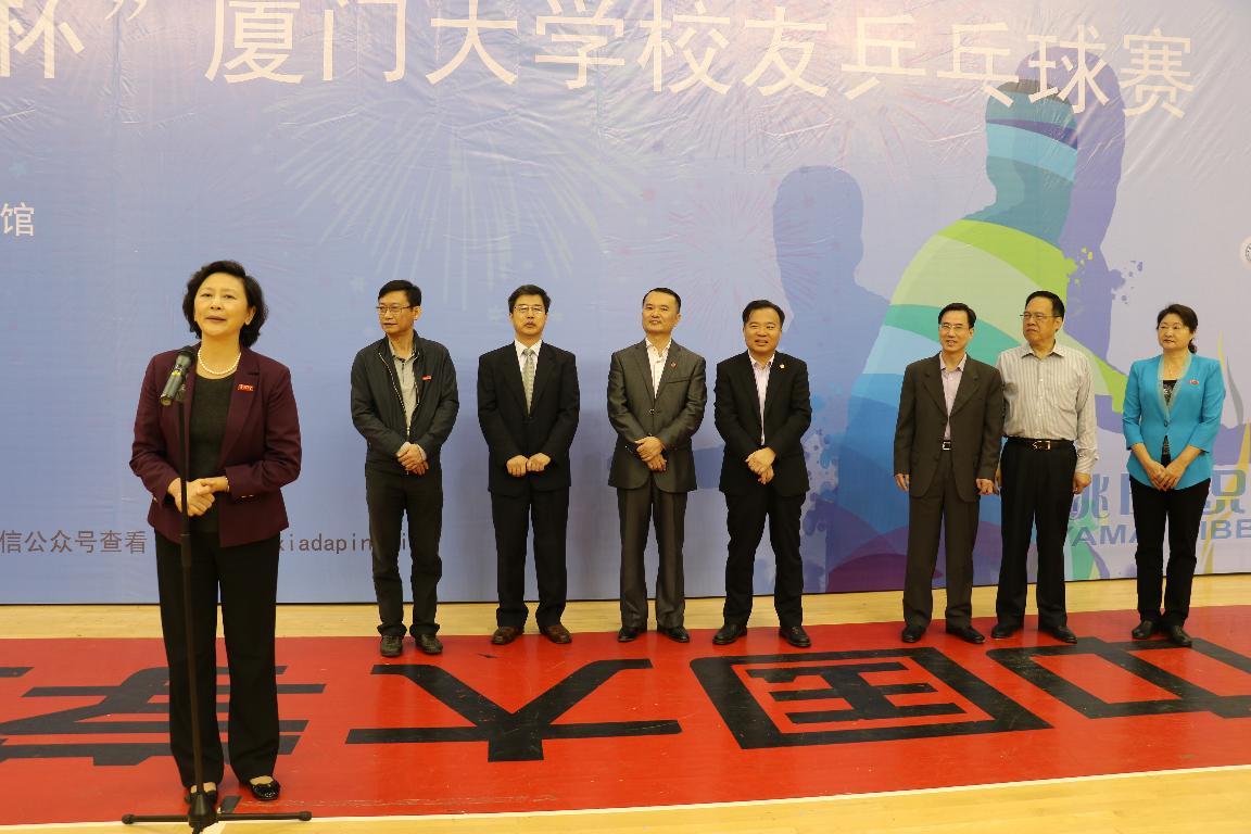 4月7日,我校95周年校庆系列活动,“姚明织带杯”厦门大学校友乒乓球赛在我校思明校区明培体育馆举行。由校友、师生组成的20支队伍参加比赛。校党委书记张彦出席开球仪式。副校长詹心丽,材料学院院长、厦大乒乓球协会会长刘兴军,厦门校友会会长姚明,厦门市乒乓球协会常务副会长温哲先后致辞。开球仪式由厦门大学校友总会秘书长曾国斌主持。