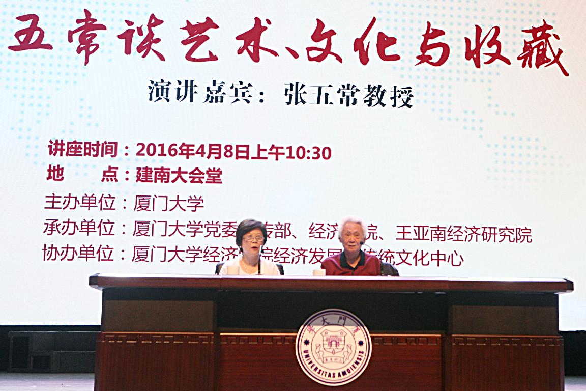 4月8日上午,著名经济学家、新制度经济学和现代产权经济学的创始人之一张五常教授在建南大会堂开讲。此次讲座的主题不是张五常教授关于经济学理论的高深见地,而是利用其对艺术的深厚见解,谈论中国各家各派的艺术,深刻部析艺术文化与收藏。副校长杨斌主持讲座。