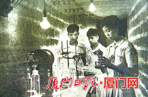 1958年“八二三”炮战期间,厦门大学师生在坑道里坚持科学研究。