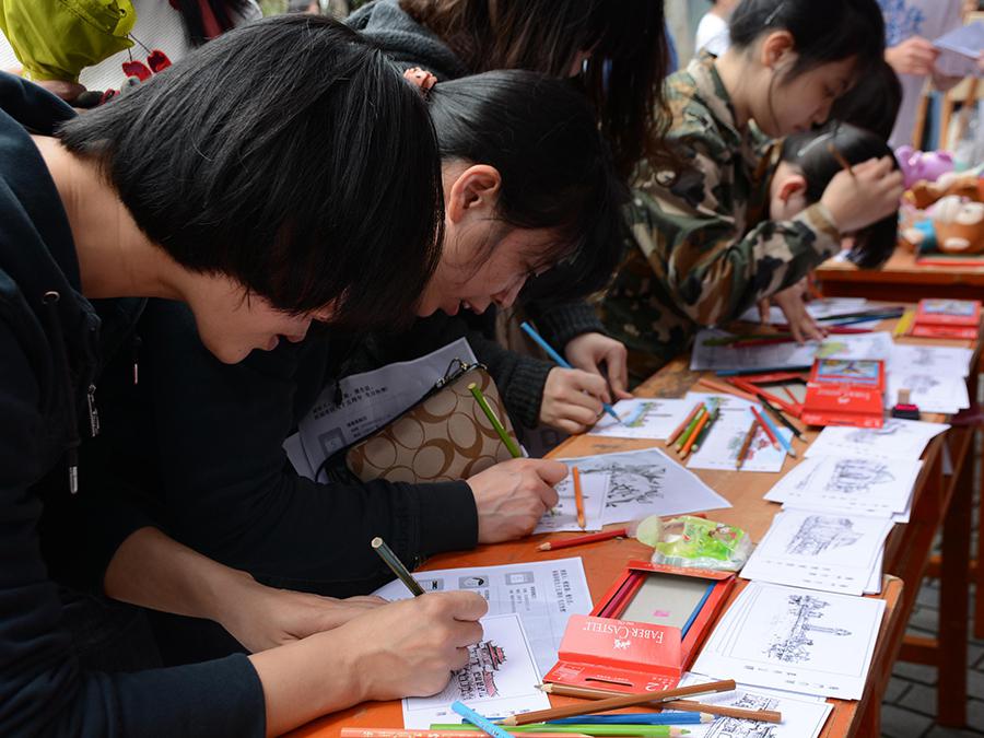 另一边,游戏区的气氛更为热烈。从简单的套圈,到拼图识厦大建筑,再到填色绘制你眼中的厦大,参与者们个个玩得不亦乐乎,感受着厦大以及建筑文化的魅力。12:15分整,轻松欢快的音乐响起,现场工作人员和易班熊一同为大家带来了百人快闪舞蹈表演,在一声声祝福中表达着对母校生日的祝福。