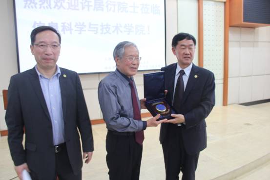 4月6日下午,海韵教学楼504报告厅座无虚席,为庆祝厦门大学建校95周年,我校特别邀请的53级校友,中国工程院院士、微电子技术专家许居衍院士南强学术讲座“集成电路架构创新脉路”隆重开讲,为全校师生呈上了一场精彩的学术盛宴。讲座由信息科学与技术学院院长李军教授主持。校长助理滕伯刚教授出席讲座,并代表学校为许居衍院士颁发南强学术讲座纪念牌。