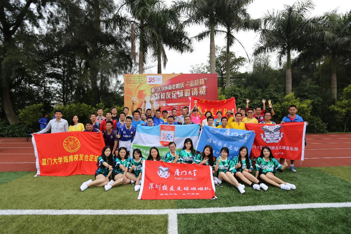 在校庆期间举办校友足球赛的传统始于2011年4月,彼时恰逢厦门大学建校九十周年,为了让广大校友重返母校时找到当年学习生活的足迹,回想在上弦场叱咤绿茵的往事,广东校友会足球队与校教工队进行了第一届“校庆杯”校友足球赛。随着第一届比赛的成功举行,该赛事成为校庆期间的常规文体活动之一,受到了广大校友的支持和喜爱。本届校友足球赛是首届以“宝苞杯”冠名的校友足球邀请赛,参赛队也扩充到八支,经过两天激烈的争夺,各支队伍在上弦场的蓝天绿茵下,本着“友谊第一,比赛第二”的态度,重回曾经努力拼搏、挥洒汗水的球场,切磋球技,交流心得,共同祝福母校95华诞。