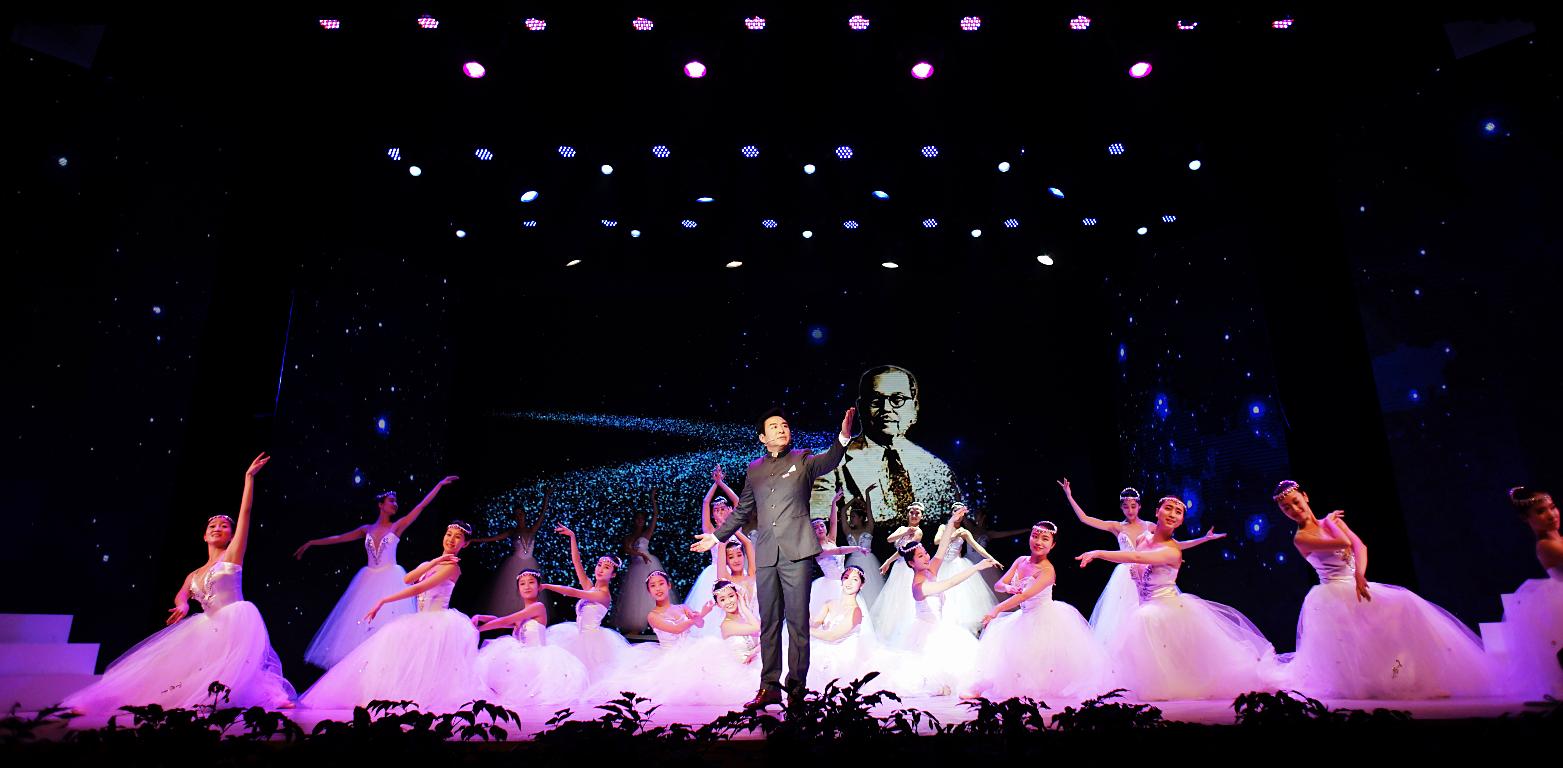 在唯美的舞蹈中,诵读音乐会拉开序幕。艺术学院王虹教授用字正腔圆、浑厚激昂的朗诵,把观众带入无限遐想之中,诵读出广大师生深深缅怀校主陈嘉庚先生的心声,感受到陈嘉庚先生倾资办学无私奉献的华侨精神。从青年陈嘉庚只身前往南洋并开创弘业,但却“心怀祖国,希图报效”,秉承“教育是立国之本,兴学乃国民天职”的信念回国倾资兴学;到嘉庚先生在国家危亡之际毁家纾难,亲赴前线的救国壮举;再到萨本栋校长发扬嘉庚精神,呕心沥血,自强不息,在炮火声中坚持办学的艰辛历程……一幕幕生动情景的再现展示了一位倾资办学、兴学救国的爱国华侨的伟大人格魅力。演员们真情实感的表演、声情并茂的朗诵、低回婉转的音乐、深情含蓄的舞蹈深深地感染了在场观众。
