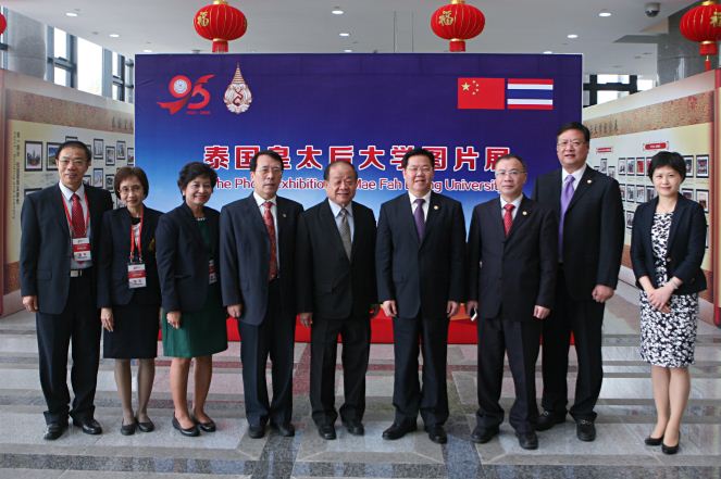 开幕式结束后,与会领导嘉宾及师生前往我校科学艺术中心大堂观看“泰国皇太后大学图片展”,共同领略皇太后大学风采。