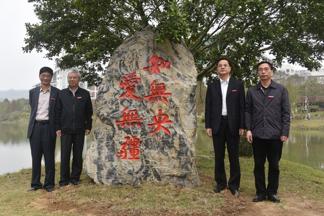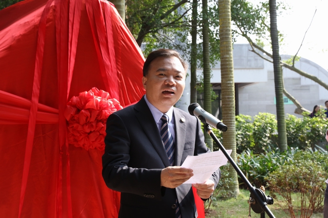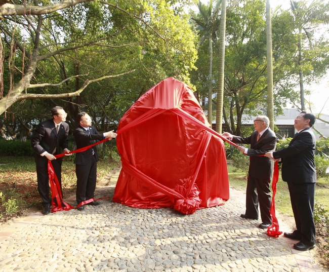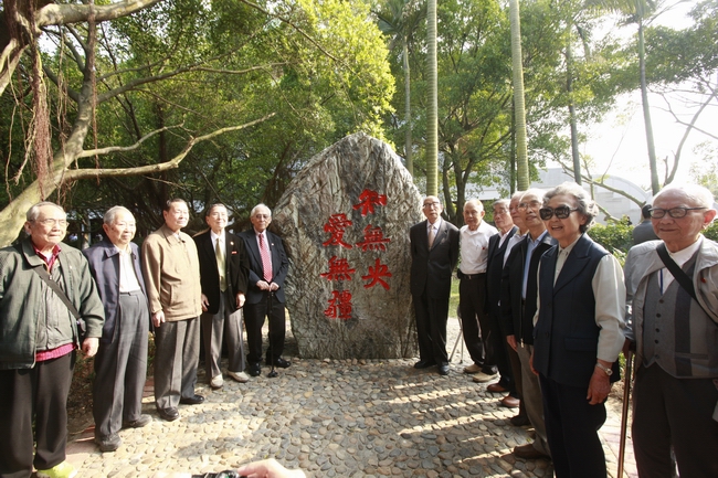 4月5日下午,思明校区校歌石揭幕仪式在芙蓉湖畔举行。校歌石捐赠者、1948届机电工程系校友、台湾校友名誉理事长周詠棠,校党委书记张彦,校长朱崇实,校党委副书记、纪委书记赖虹凯共同为校歌石揭幕。来自全球各地22位,平均年龄高达89岁的老校友,学校有关部处、学院负责人代表、师生代表参加揭幕仪式。仪式由副校长詹心丽主持。
