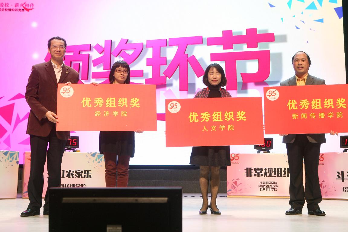 历经半个多月如火如荼的初、复赛选拔,3月31日晚, “学史爱校·薪火相传”校史校情知识竞赛决赛在建南大会堂隆重举办。此次活动系学校“走进世界 迈向百年”学生迎校庆系列活动之一,由学生工作处和新闻传播学院共同主办,新闻传播学院团委承办,i厦大·易班发展中心协办。全校师生怀着对母校95岁华诞的真情祝福,热情高涨,踊跃参与,参与面较广。截止决赛前,全校共有3811人参与易班平台答题,涵盖本、硕、博三个层次,共284支队伍参加预赛,其中包括学院组队168支、个人组队116支,10支队伍挺进决赛。