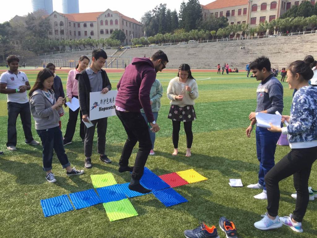 活动当天吸引了我校数百名中外大学生的参与,现场气氛热烈,同学们个个热情高涨。趣味运动会采取积分制,以小组为单位,每组四人,队员由中国学生和留学生共同组成。与传统运动会相比,本次运动会更加注重趣味性、群众性和团队协作,如“五洲风情”、“与球同行”、“四人五足”、“同心同律”等项目都侧重考验团队成员配合的默契。经过三个半小时的激烈角逐,来自管理学院的赖琪琬(马来西亚籍)、蔡佳颖、艾萨、张志宇组成的团队夺得桂冠。来自巴基斯坦的留学生Rauf说:“我是第一次参加这项活动,运动会的项目很有意思,既锻炼了身体,又认识了很多新朋友,明年还想再参加”。来自经济学院的欧俊峰同学也表示“团队总是能产生‘1+1>2’的效果,通过默契的配合与协作,完成了看似不可能完成的项目,很有成就感”。活动的尾声,在场的中外大学生录制了一段视频,共同祝愿母校95周年生日快乐。