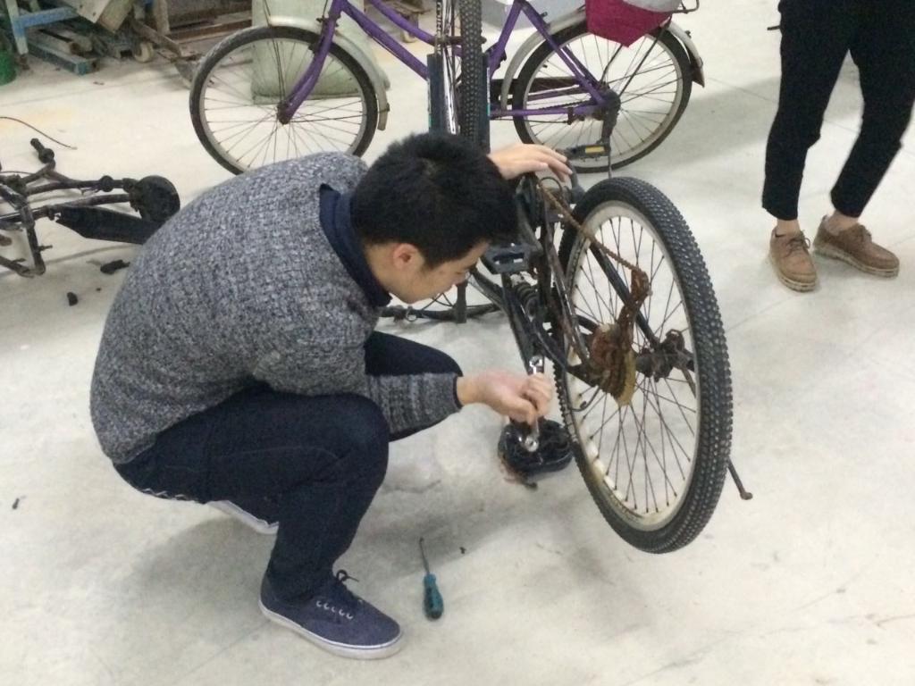 3月5日,“小绿工坊”于厦门大学翔安校区开张了。上午9:00,“小绿工坊”正式开张,吸引了众多同学,在小绿工坊志愿者的指导下,同学们分成若干小组,自行动手对学校清理回收的无主自行车进行拼装改造。在专业人员的协助下,同学们很快掌握维修自行车的诀窍,并陆续完成自己的作品。此外,也有很多同学前来维修自己的爱车,自行动手完成自行车的修理工作。截止当日15:30活动结束,“小绿工坊”共完成组装及修理自行车近50辆,参与人员超过200人次,得到了同学们的一致好评。