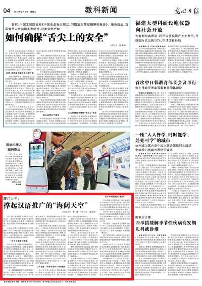 2月2日,《光明日报》第4版(教科新闻版)刊发题为“厦门大学:撑起汉语推广的‘海阔天空’”的深度通讯,深入报道我校汉语推广和孔子学院建设的举措、经验和成效。
