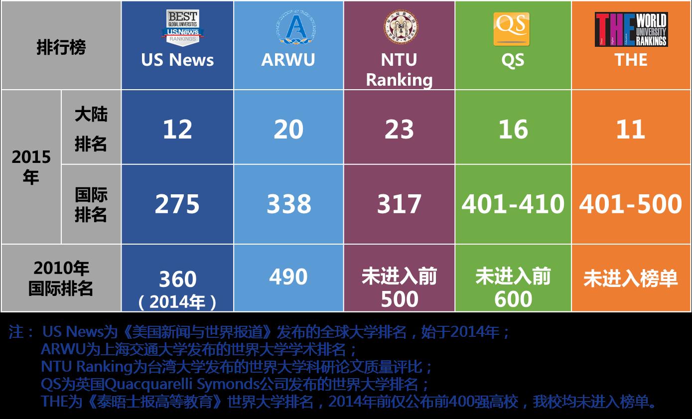 近年来,厦门大学在国内外主流大学排行榜中稳步提升,整体实力跃居全球前400强。