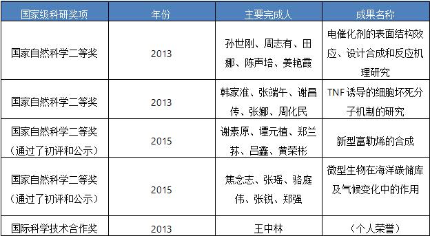 获得国家自然科学奖二等奖4项、国际合作奖1项、中国科学十大进展1项、中国高校十大科技进展2项、中国高校人文社科研究优秀成果奖32项。