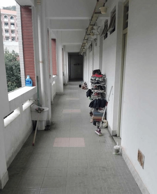 宿舍楼垃圾回收点,不同与过往摆放在楼道的垃圾桶,回收点处的垃圾桶都带有桶盖,这样可以避免垃圾味道四处飘散引来蚊虫。
