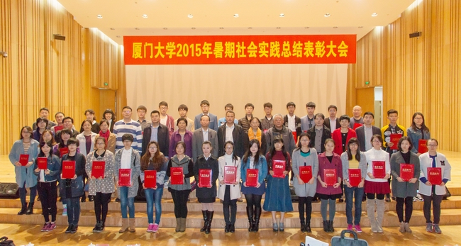 会前播放了我校今年暑期社会实践总体情况的回顾视频,校团委书记陈怀锋从基本情况、主要特点和主要成效三个方面总结了今年暑期社会实践活动的整体进程,学生工作部部长夏侯建兵宣读《厦门大学2015年暑期社会实践表彰决定》。