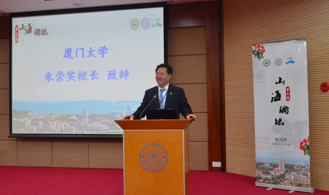 朱崇实首先代表学校对来自两岸三地的专家学者代表的到来表示热烈的欢迎。他回顾了自2011年举办首届“山海论坛”以来,三校在教学科研、人才培养等多领域开展的合作情况,对学校近年来取得的成绩和未来发展态势作了简要介绍。他希望今后继续用好“山海基金”,大力推动三校间院际合作,在教师互访、学生交流、联合科研、共同举办会议等方面合作的基础上,夯实已有的优势学科合作,不断进一步挖掘合作渠道,拓展更多领域的深入合作,不断增进合作实效。