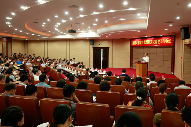 会议指出,高校肩负着学习研究宣传马克思主义、培养中国特色社会主义事业建设者和接班人的重大任务,这是我校宣传思想和文化建设工作的认识起点和行动出发点。今后一个时期,我校宣传思想和文化建设工作要围绕以下六个重点任务展开:一是坚定理想信念,始终坚持社会主义办学方向。发扬厦门大学光荣传统,不断深化中国特色社会主义和中国梦宣传教育,深入推进马克思主义的研究和传播。二是加强阵地建设,努力建设示范性马克思主义学院,深入实施马克思主义理论学科领航计划,不断加强哲学社会科学学术话语体系建设。自觉运用法治思维和法治方式严格阵地管理,妥善处理好加强管理与维护学术自由和保障言论自由的关系。三是不断提高引导能力,赢得舆论主动权。着眼于信息传播的特点和规律,拓展宣传思想工作领域,提高新闻宣传质量,掌握舆论主导权。四是继续加强师德师风建设。齐抓共管,建立师德师风长效机制,引导广大教师做学生敬仰爱戴的品行之师和学问之师。五是加强和改进大学生思想政治工作。贴近学生、贴近生活、贴近实际,上好思想政治理论课。关心学生身心健康和就业、创业。发挥党团组织、工会、关工委和理论报告员、党建组织员等组织、团体的积极作用,形成群体优势,推动大学生思想政治教育创新发展。六是推动文化传承创新,共同建设社会主义先进文化。结合厦大实际,培养造就优秀文化人才、推出原创文化作品,在东西方文化交流、海峡两岸文化交流中发挥独特、重要作用。弘扬社会主义核心价值观,深入挖掘厦大“四种精神”的丰富内涵,在全校倡导爱校荣校、改革创新、团结合作、包容共享的校园价值理念。