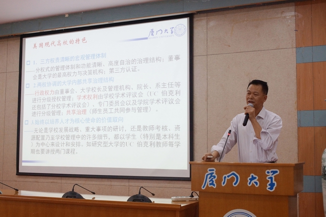 在谈及厦门大学本科教学改革思路时,计国君认为,要将国际化视野和能力渗透到人才培养全过程,将创新创业教育意识深入到人才培养全过程,将资源共享渗透到教学管理全过程。要完善治理保障监控体系,形成厦大独特的质量文化和教学文化。在谈及学校管理工作时,计国君强调建设一流大学需要有一流的管理服务水平作为支撑,学校要不断提高管理的效率和服务水平。他认为美国大学的“研究式”管理模式十分值得借鉴和学习,学校及管理人员要对大学办学规律理解深刻,对管理活动及过程要有深入研究,做到研究先行、过程精细、流程规范。