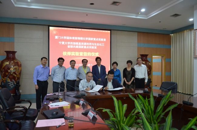 会上,宁夏大学化学化工学院院长刘万毅、我校固体表面物理化学重点实验室主任王野代表双方签署合作协议。据悉,根据合作协议,双方将在课题申报、研究,实验室人员交流、资源信息共享等方面开展广泛合作。