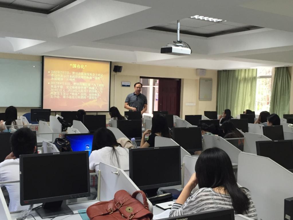 这门课是本科生的《日本文化史》。承接前一次课程的内容,吴老师围绕现代日本的中国认识,穿插着不少历史轶事,给学生们讲解了中日关系的发展历程。两位日本留学生也参加了这一课程,因为内容涉及领土争端等敏感问题,吴老师还专门询问了她们的感想,分析了中日两国媒体报道与问题认知的差异性。