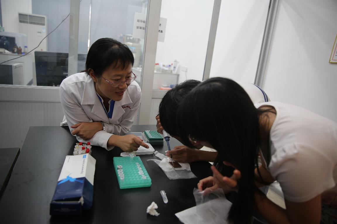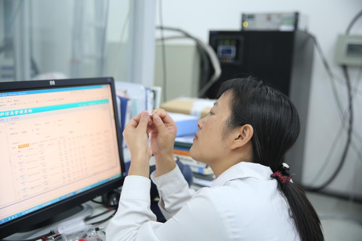 10:30,在靠门的另一台质谱仪上,2015级博士生梁晶晶正在进行样品测试。在前一天,梁晶晶参加了林老师关于仪器使用的培训,培训整整持续了三个小时。今天是她第一次独立上机操作,所以格外小心谨慎。林老师不时放下手头的活儿,提醒她需要注意的事项,还不忘不时鼓励。
