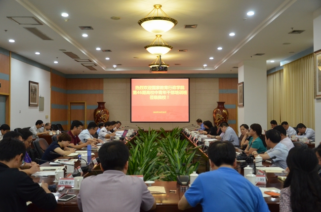 10月22日下午,国家教育行政学院第46期高校中青班干部培训班学员来我校考察调研,重点围绕教育综合改革与质量建设展开深入交流探讨。我校副校长叶世满、组织部、发展规划办、教务处、研究生院等学校相关职能部门负责人出席座谈会。会议由组织部部长孙理主持。