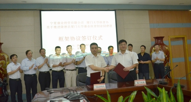 “隆德县厦门大学康业扶贫创业园”是在隆德县产业园区中小企业(创业)孵化园的基础上创建的。创业园建成后,学校将以合作开发、技术转让、技术入股等方式,积极推动我校科技成果在园区转化,推动当地优势特色产业向先进生产力转化,建立可持续发展的科技扶贫模式,为隆德县经济发展提供人才、智力支持。