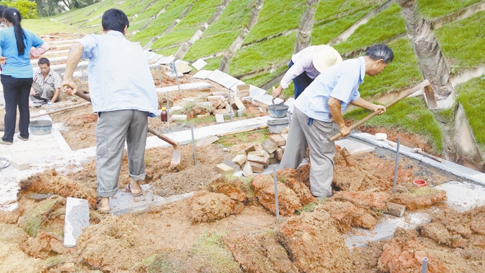 从暑期到现在,绿化工人们,加班加点奋战在绿化施工现场。除了做好浇水、除草、修剪、施肥、病虫害防治等常规绿化管理养护工作外,绿化工人们还完成了幼儿园小山坡改造、成义楼周边绿化改造、思明校区水网改造绿化恢复、丰庭宿舍周边绿化改造、嘉庚广场绿化改造等十余项绿化工程。在这些绿化工程里,他们累计完成1200立方米的土方回填、清运315农用车土坨,整理绿化地9000平方米、铺植马尼拉草6500平方米、种植地被植物(如黄心梅、花叶鹅掌柴、白蝴蝶、粉花翠芦莉等)约2500平方米、种植乔木50棵(橡皮树、四季桂、香樟树等)、绿地硬化约1150平方米(透水砖、植草砖、水泥混凝土)。