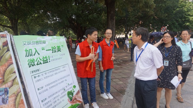 长假第一天,校园秩序总体有序。学校加大了对“黑车”、“黄牛”的整治力度,增加了保洁人员数量和工作时间,同时分别在大南校门、群贤校门、三家村、科艺中心等处设立了校园志愿服务点,开展“一捡美”微公益行动,倡导垃圾不落地,引导游客文明参观校园。检查组现场研究工作中遇到的困难和问题,分解细化任务,推进责任落实,确保长假期间良好的校园秩序。
