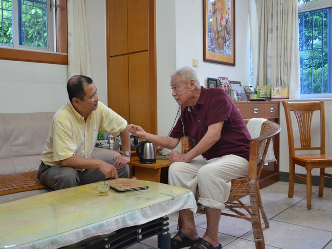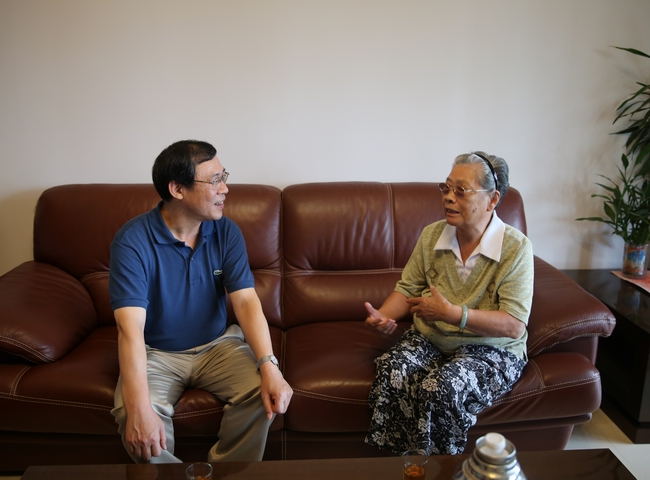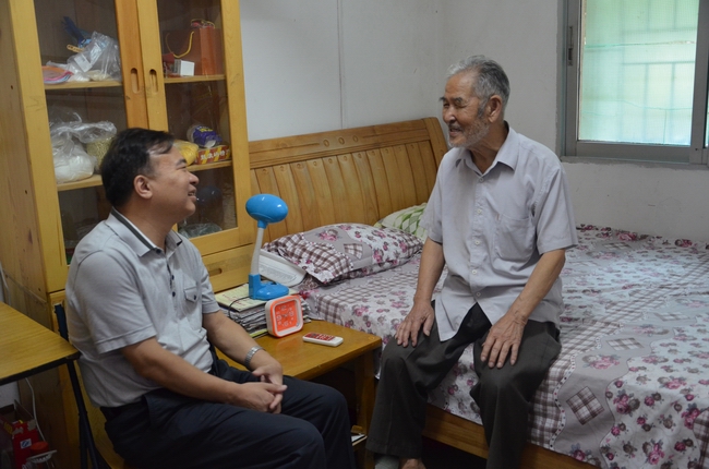 在抗战老兵家中,校领导与他们促膝交谈,关切地询问了他们的生活起居、身体健康等状况,并仔细聆听了老同志回忆的那段战争岁月。“感谢学校的关心”,今年92岁的抗战老兵朱宝梁激动地说道,“和平年代的生活比以前好多了,我十分珍惜。”
