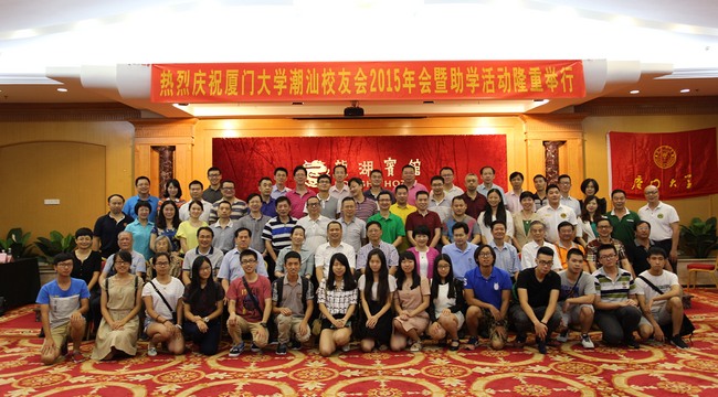 8月15日下午,我校潮汕校友会2015年年会暨助学活动在汕头市龙湖宾馆隆重举行,来自潮汕地区的老、中、青百余位校友欢聚一堂,场面温馨、热烈。校党委副书记、校友总会副理事长林东伟,校友总会副理事长潘世墨,继续教育学院院长郑文礼,校友总会副秘书长石慧霞,汕头市侨联主席谢惠蓉等应邀出席大会。来自我校广东、珠海、深圳等地的兄弟校友会代表,以及广东省闽南经济促进会潮汕分会、汕头客属海外联谊会、广东狮子会善心服务队、部分高校汕头校友会代表亦出席了大会。大会由我校1986级法律系校友曾爱东主持。