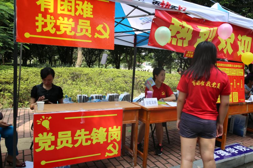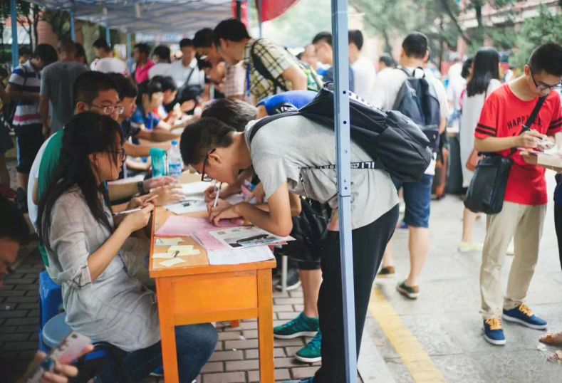 身着志愿者T恤学生志愿者在校园内穿梭,为新来的新生讲述报到流程,带领他们找到各自的宿舍,态度热情、细致负责。志愿者王同学是管理学院大三学生,红色T恤上“有困难找党员”几个字眼格外亮眼,一个上午他几乎没有停歇,指引新生报到,带着新生购买生活用品,帮忙提行李……头发、额头、脸颊上满是汗珠,身上衣服早已湿透。想到自己刚入校时的茫然,王同学就毫不犹豫地报名参加志愿者,“希望能帮到学弟学妹,将爱心传递下去”。