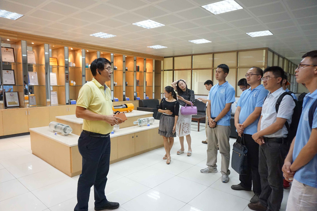 广州市晶邦液压密封技术有限公司董事长、厦门大学广东校友会监事长、化学系79级校友黄国典代表厦门大学广东校友会向实践队的到来表示欢迎,并向队员们详细介绍了公司基本情况、产线管理、产品控制等运营、管理情况,并带领大家进入一线厂房参观公司产品的生产过程。