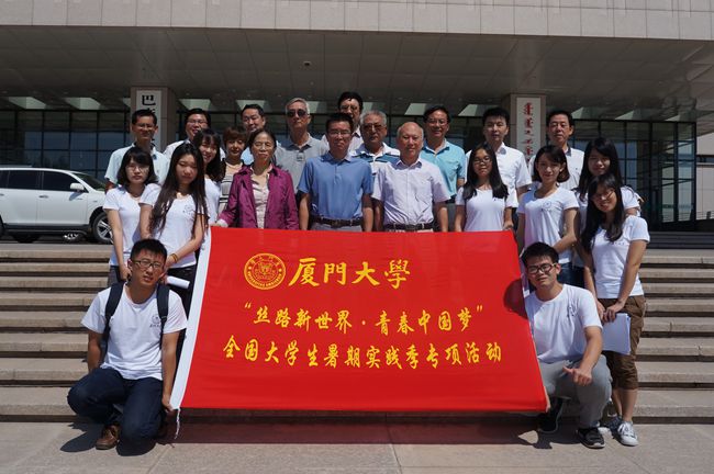 19日上午,“丝鹭寻梦”实践队在巴彦淖尔市党政大楼召开座谈会。宁夏大学党委书记金能明、校关工委主任陈力文一行以及巴彦淖尔市政府办、教育局、文化广电局、旅游局、质监局、团委、河套学院等相关单位负责人参加了座谈。座谈会上,陈力文代表学校感谢巴彦淖尔市委市政府对我校社会实践队伍的大力支持,向实践队师生送上亲切慰问。她充分肯定了队员们为积极响应团中央“丝路新世界•青春中国梦”号召,深入基层一线开展实践调研的举措。她说,社会实践是大学生扎根群众、深入基层、践行服务的平台,也是锤炼品格、磨砺身心的途径。她勉励大家再接再厉,发扬厦大“四种精神”,扎实地开展调查研究,积极投身“一带一路”建设,为地方经济社会发展建言献策。宁夏大学党委书记金能明对同学们在实践过程中展现出厦大人的良好风貌和实践精神给予了高度评价,他希望同学们珍惜难得的实践机会,按照习近平总书记提出的“勤学、修德、明辨、笃实”要求,在深入社会、了解国情、接受锻炼的过程中培育和践行社会主义核心价值观,进一步提升对国家、对民众的社会责任感,为实现中国梦而努力奋斗。他还希望双方利用这次机会,加强沟通交流,扩大合作。随后,大家围绕“一带一路”的倡议构想,就巴彦淖尔市的文化、旅游、经贸、教育等方面进行深入的交流。