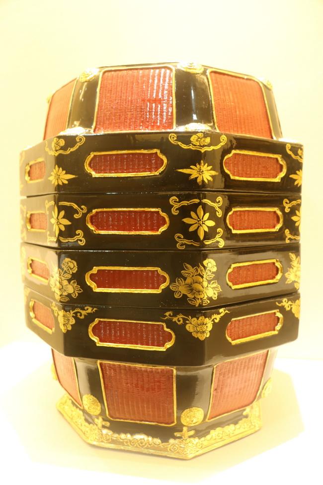 7月25日,指尖闽南实践队来到了泉州市永春县仙夹镇龙水村,探访“桃源双绝”之一——漆篮。从龙水村的精品漆篮展示馆和漆艺大师郭志煌那里了解到,龙水村漆篮从明正德年间流传至今已经有500多年的历史,漆篮制作从破竹、竹编、灰工到漆画堆雕,再到制作成成品,少说有39道工序,细数可达100多道。给漆篮上大漆的手艺是祖传的,上等漆篮用的漆是天然的植物漆。漆篮品种繁多,包括竹编的漆盒、漆盘、提篮多种。漆盘浅,漆盒深。提篮有提手,漆盒没有提手;提篮又分为扁篮、格篮、盛篮三种。扁篮单层且盖面较圆,格篮双层中间有格,三层以上且盖面较平的是盛篮。据介绍,漆篮的制作遵循严格的尺寸标准,各相邻尺寸之间相差3公分。漆篮在过去是走亲访友、迎神拜佛、女儿出嫁时必不可少的盛具,现在漆篮渐渐从日常用品向工艺品转型,精品漆篮价格不菲,具有极高的收藏和观赏价值。精品漆篮主要销往东南亚,华侨、移民购买漆篮以慰思乡之情。