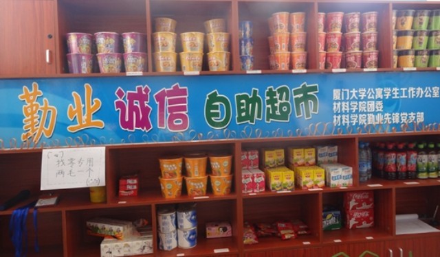 7月13日,新华网刊发题为“厦门大学学生的实验:诚信如何转过‘拐角’”的通讯,报道我校材料学院“勤业先锋党支部”创办的“诚信自助超市”。