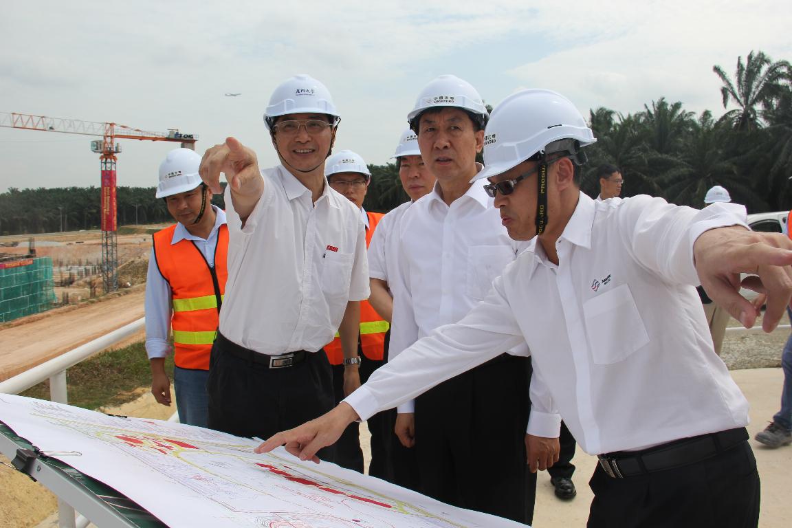 5月27日,国务委员王勇一行在中国驻马来西亚大使黄惠康等陪同下,考察了我校马来西亚分校建设工地。