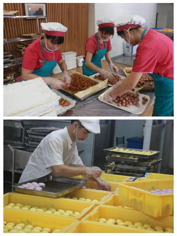 冷餐会筹备从策划到实施,各环节严把严抓。仅仅是餐品的甄选,就集合了领导层、办公室、餐厅、采购组反复的商榷与考察,并结合去年的情况推优出新:卤牛肉、鸭大胸、椒盐虾学生爱吃,餐厅就继续烹饪;菌菇包、海胆丸、鱿米花新颖美味,平常不曾供应,特意来点新鲜面孔;端午节吃粽子是中华文化传统,肉粽甜粽厨师一个个手工包起,咸甜党均有口福。用餐数据数次变更,集团及时跟踪,调整菜肴数量及对应时间,保证顿顿新鲜。为保海鲜之“鲜”,采购组经理每天凌晨三点多至芙蓉餐厅验收活虾。供应较多的餐厅,如芙蓉、凌云、海韵园,凌晨四点员工已到岗操作。机修组和餐厅送餐车来回奔走,让菜肴在开餐前全部到位。摆盘也有讲究,用餐区装盘的菜肴整齐美观、赏心悦目。供餐也根据实际调整,让学生满意,20日第一场冷餐会,因牛肉获得好评、玉鼠包遭遇冷落,领导讨论后迅速在第二场调整了供应份量。