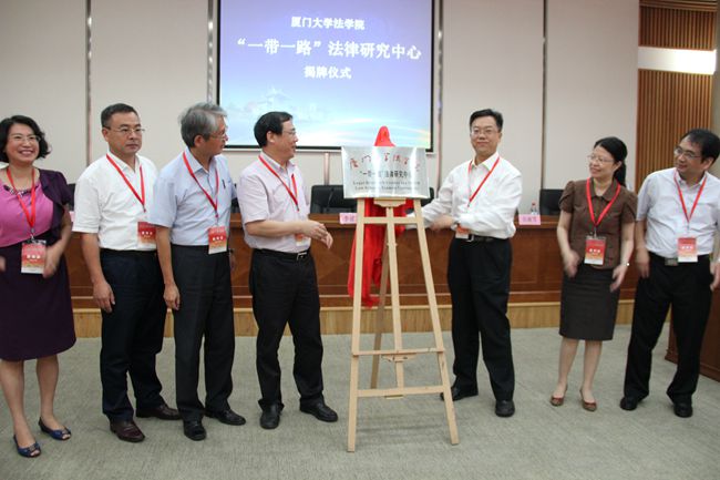 6月20日,由我校法学院主办的“一带一路”法律研究中心揭牌仪式暨“一带一路”——自贸区高端法律论坛在科学艺术中心顺利举行。国家税务总局所得税管理司副司长刘磊先生,校党委副书记、副校长李建发教授,台湾大学法学院院长谢铭洋教授,厦门市中级人民法院副院长吴丽雪女士,我校法学院院长徐崇利教授,法学院党委书记李智勇老师,法学院副院长何丽新老师在内的相关领导、省内外兄弟院校领导和老师、以及关心“一带一路”和自贸区建设的社会各界朋友共同出席了本次论坛。