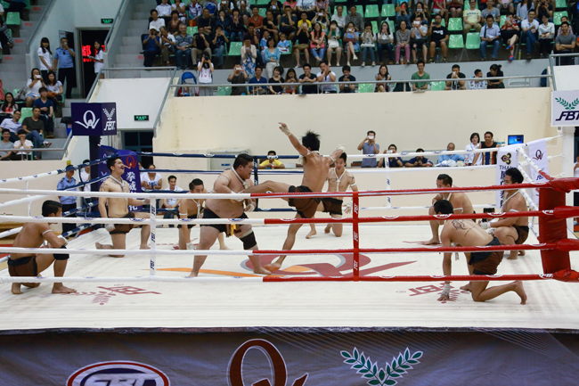 为庆祝泰中建交40周年,5月27日晚七点,由泰国外交部主办,泰国驻厦门总领馆、厦门大学联合承办的“2015泰拳文化展示”活动于我校明培体育馆举行。10余名泰拳手通过古代泰拳、中期泰拳、当代泰拳、泰拳操表演等,向观众展示泰拳文化。
