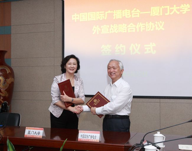 我校与中国国际广播电台携手,共同向世界讲好厦大故事、唱响厦大声音。5月22日上午,双方在校签署《关于建立“文化走出去”外宣战略合作关系的协议》,建立全方位的外宣战略合作伙伴关系。