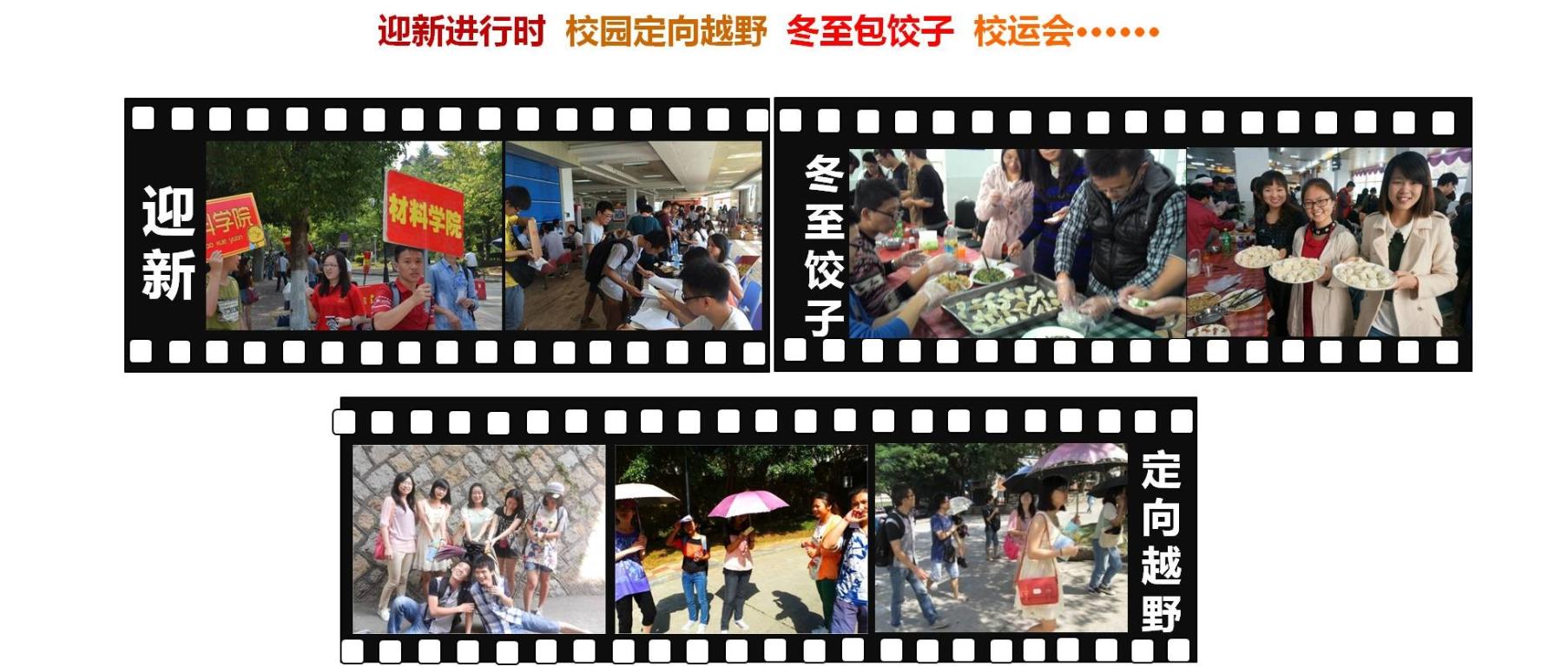文化建设的丰富化也引人注目,从定向越野、博饼、包饺子、运动会,再到班级心理素质拓展,各类文体活动交相呼应,“硕果2013”成员时时都能感受到这个大家庭的温暖。学院量身打造了师生联谊系列活动,构建“师生Sport-time”的加工模式,“有科研,一起搞;有活动,一起玩。”和谐的师生关系是材料加工过程中的润滑剂,“硕果2013”在愉悦的氛围中成长。