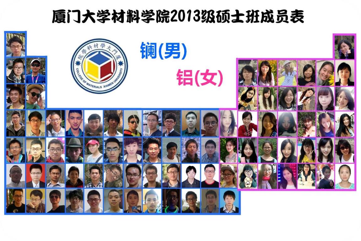“硕果2013”的班级成员(原料)由来自五湖四海的84位同学(具有84种特质的元素)组成,84位同学相聚一起,相亲相爱、互帮互助。班级配备有3个党支部、8个班委、1个团支部,以党、团、班联席会议制度为纽带,确保所有元素融合反应高效运行。