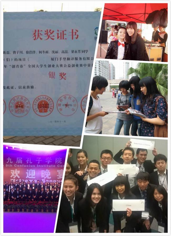 高昕同学是英四支部里的创业典范。大一时无意间接触的手语,现在却成为了她为之奉献的“事业”。在手语的学习中,她不仅看到了聋人对与正常人交流的渴望,更看到了当前社会对于手语翻译人才的迫切需求。“这可能是一条沟,需要有人去填补。”随后,她便以手语为切入点,开始了漫长的为聋人朋友寻求服务的征程。在克服了寻找投资公司、搭建网络平台的困难后,她最终收获了果实。2014年,以高昕为队长的“厦门手望翻译服务有限公司”创业项目在2014年“创青春”全国大学生创业大赛公益创业赛中获得了全国银奖。