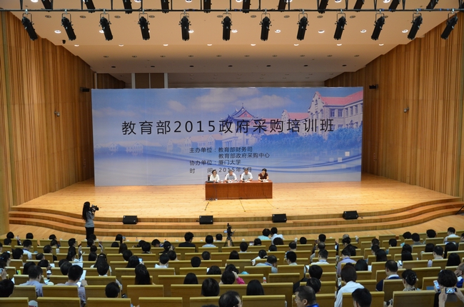 5月12日上午,教育部2015年政府采购培训班在我校科学艺术中心开班。教育部财务司副司长郭鹏、教育部政府采购中心副主任刘宜、厦门大学副校长叶世满出席开班仪式并致辞。开班仪式由教育部财务司预算处陈淑梅副处长主持。