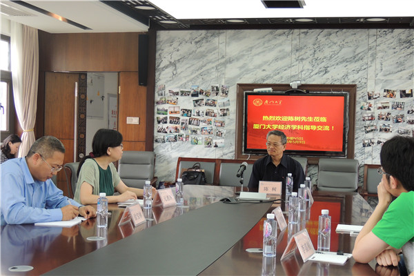 5月9日,原台湾“财政部”常务次长、证券交易所董事长、金融研训院董事长兼中华公司治理协会理事长、“行政金融监督管理委员会”主任委员、证券柜台买卖中心(OTC)董事长、中原大学商学院财务金融系荣誉讲座教授陈树应邀到访厦大经济学科。除作客厦门大学经济学院和王亚南经济研究院(WISE)、厦门大学自贸区研究院系列讲座外,陈树还结合自己在金融界的职业生涯以及人生经历,与经济学科师生进行了深入的交流。
