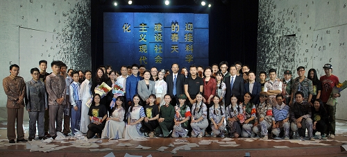 首演启动仪式上,中国科协副主席、书记处书记陈章良发表了感人至深的致辞。他说,“共和国的脊梁——科学大师名校宣传工程”旨在通过校友演校友、学弟演学长的方式,将目光聚焦在这些以人民利益为最高利益、以报效祖国为最高荣耀、在创造一流科技业绩中书写人生辉煌的科学大师和科技界的民族英雄,展示他们作为共和国脊梁的崇高形象和光辉业绩。希望同学们以钱学森、李四光、陈景润、邓稼先、郭永怀、竺可桢、茅以升、王选、罗阳等9位科学大师和科技界民族英雄为榜样,学习他们的爱国精神、科学精神和奉献精神,为祖国建设作出自己的贡献。