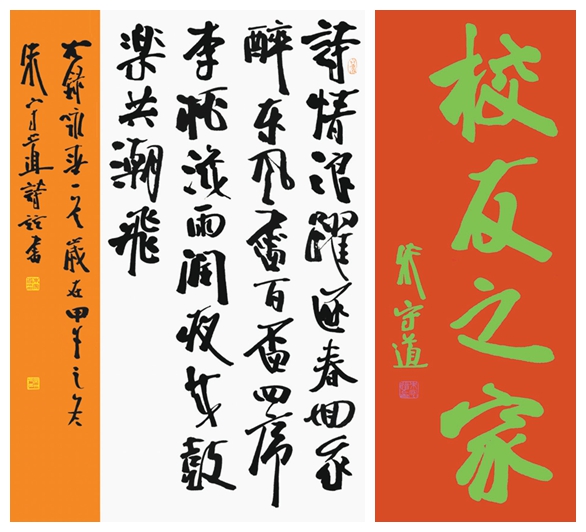 朱守道作品。右图为朱守道为母校校友总会题赠“校友之家”门匾