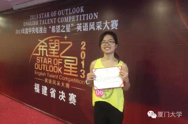 在学业上她成绩优异,大一上、下学期的绩点排名分别为第二及第四名,加权成绩排名则均为第二名。然而学习并不是她的全部生活,她也为外文学社的手语翻译作出了自己的努力。因为一次偶然的机会,她加入了外文学社的手语翻译部,负责管理微博主页,坚持每周在微博上更新手语教学视频供手语爱好者学习。说起手语,她认为那并不是一件称得上是好玩的事情,而是一种无奈。也许是因为与聋人相同有着别人理解不了的一些障碍,她更能理解聋人,也更添对手语的一份热爱。