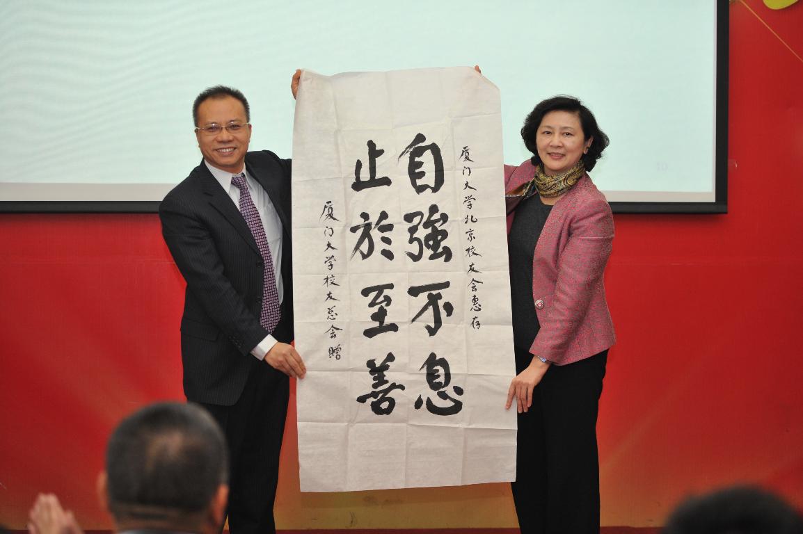 张彦还向离任会长陈抗甫颁发了荣誉证书,为新任会长陈国钢颁授了会长牌。詹心丽向北京校友会颁授了会旗并赠送了校训书法作品。新任会长陈国钢、新任监事长赖观荣、外地校友会代表厦门校友会会长姚明以及北京校友代表孙亚夫、黄喆斌、伊人龙、陈斌华、陈剑峰、路彬彬、王齐等分别致辞。大会完成了各项议程,在热烈的掌声中圆满结束。