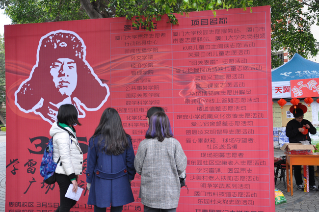 “3·5学雷锋纪念日”广场活动是厦门大学青年志愿者协会的传统品牌活动,引导全校青年同学传承雷锋精神,弘扬“奉献、友爱、互助、进步”的志愿精神,用青春的担当,传递温暖社会的正能量。